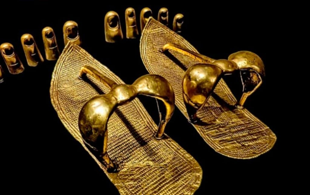 من بين الكنوز المميزة في غرفة الملك توت عنخ آمون الصندل الذهبي المصنوع من الذهب والجلد ومواد طبيعية متنوعة، والمصمم بأصابع القدم الخمسة لحماية قدمي الملك من أي إصابة. كما زين الصندل بتفاصيل تشبه الفيونكة، مما يعكس اهتمام المصري القديم بالجمال والدقة في الحرف اليدوية.