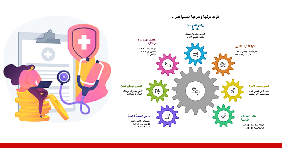تأمين صحة المرأة هو منتج تأميني يركز على تغطية المخاطر الصحية المرتبطة بطبيعة المرأة البيولوجية والاجتماعية، ويشمل خدمات الفحوصات الوقائية، ورعاية الحمل والولادة، والكشف المبكر عن الأمراض، إضافة إلى علاج الحالات المزمنة والخدمات التخصصية.