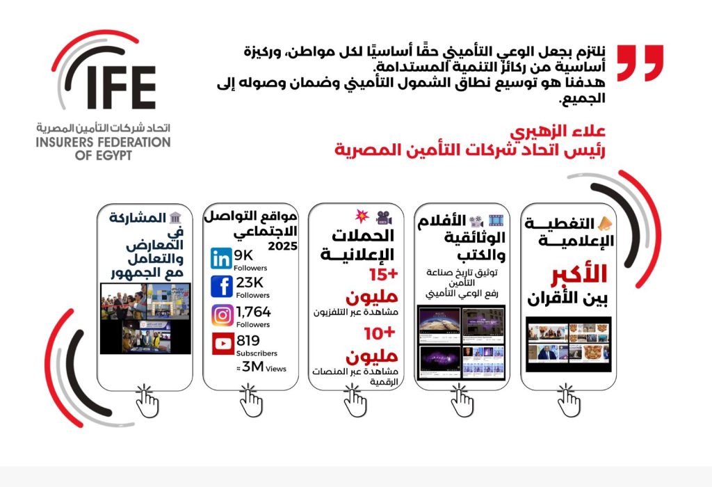 وأكد الزهيري أن هذه الجهود لم تكن شكلية، بل أدت إلى نتائج ملموسة تمثلت في تفاعل الآلاف من الشباب، وارتفاع نسب المشاهدة والمتابعة، إلى جانب زيادة الإقبال على خدمات التأمين، خاصة في مجالات التأمين الصحي، والتأمين ضد الحوادث، والتأمين على الحياة.