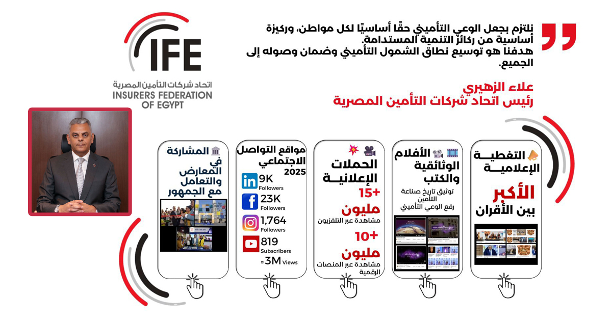 “نعمل من أجل مجتمع أكثر وعيًا، أكثر أمانًا، وأفضل استعدادًا لمواجهة التحديات. التأمين هو أداة لحماية الإنسان والمجتمع، ولن نتوقف عن العمل حتى تصبح ثقافته جزءًا من وعي كل مواطن.”