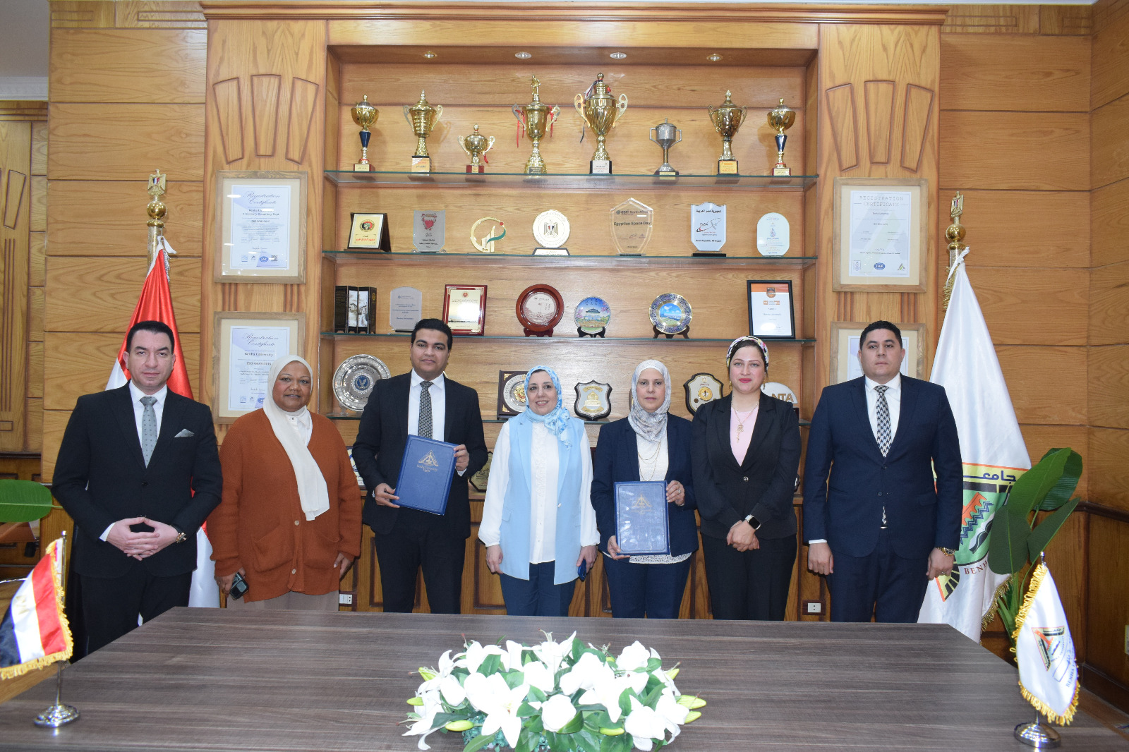 برعاية الدكتور ناصر الجيزاوي رئيس جامعة بنها ، شهدت الدكتورة جيهان عبد الهادي نائب رئيس الجامعة لشئون الدراسات العليا والبحوث ، توقيع بروتوكول تعاون بين مركز تنمية قدرات أعضاء هيئة التدريس والقيادات بالجامعة واتحاد بشبابها.